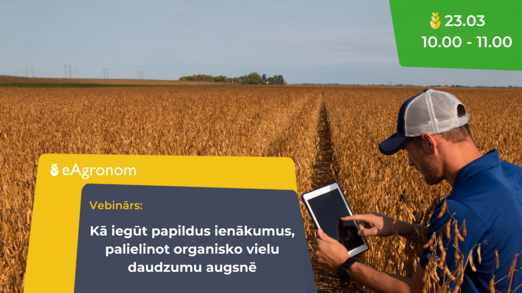 23. martā no pulksten  10.00 līdz 11.00 norisināsies eAgronom vebinārs “Kā iegūt papildus ienākumus, palielinot organisko vielu daudzumu augsnē”, kurā aicināti piedalīties nozares profesionāļi un ikviens interesents, informē pasākuma rīkotāji.