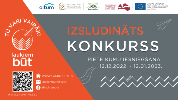 Līdz 12.janvārim var pieteikties konkursam “Laukiem būt!”, informē Latvijas Lauku konsultāciju un izglītības centrā (LLKC).