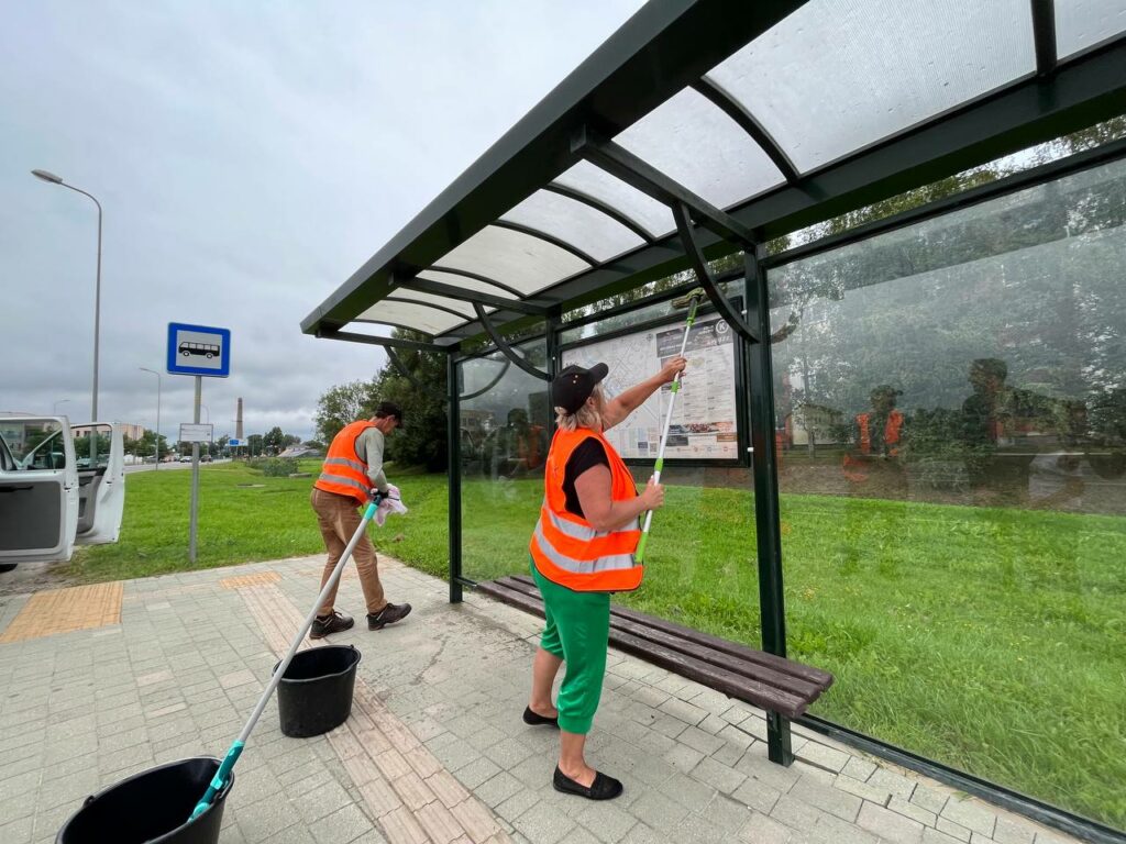SIA “Kulk” Labiekārtošanas nodaļas brigāde sestdien, 6. augustā, Jelgavā sāka mazgāt autobusu pieturu nojumes. Tiks nomazgāti stikli, soliņi, jumts, informē uzņēmums.
