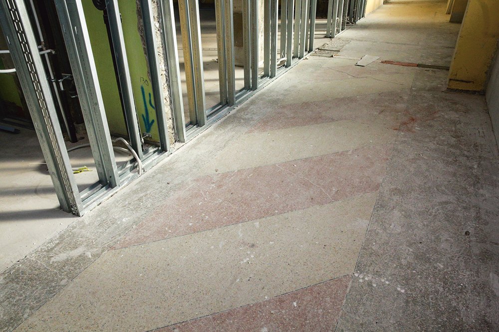 Praktiski visos skolas stāvos ir iebetonēta jauna grīda, un tikko būvnieki visām kāpnēm izbūvējuši jaunus pakāpienus. Kāpnēm būs arī jaunas margas. “Arhitekti uzstāj, ka ēkā ir jāsaglabā kāds vēsturiskais akcents, tāpēc visos skolas gaiteņos tiks atjaunots vēsturiskais grīdas segums – betona mozaīka,” stāsta būvdarbu vadītājs Ralfs Jurgens.