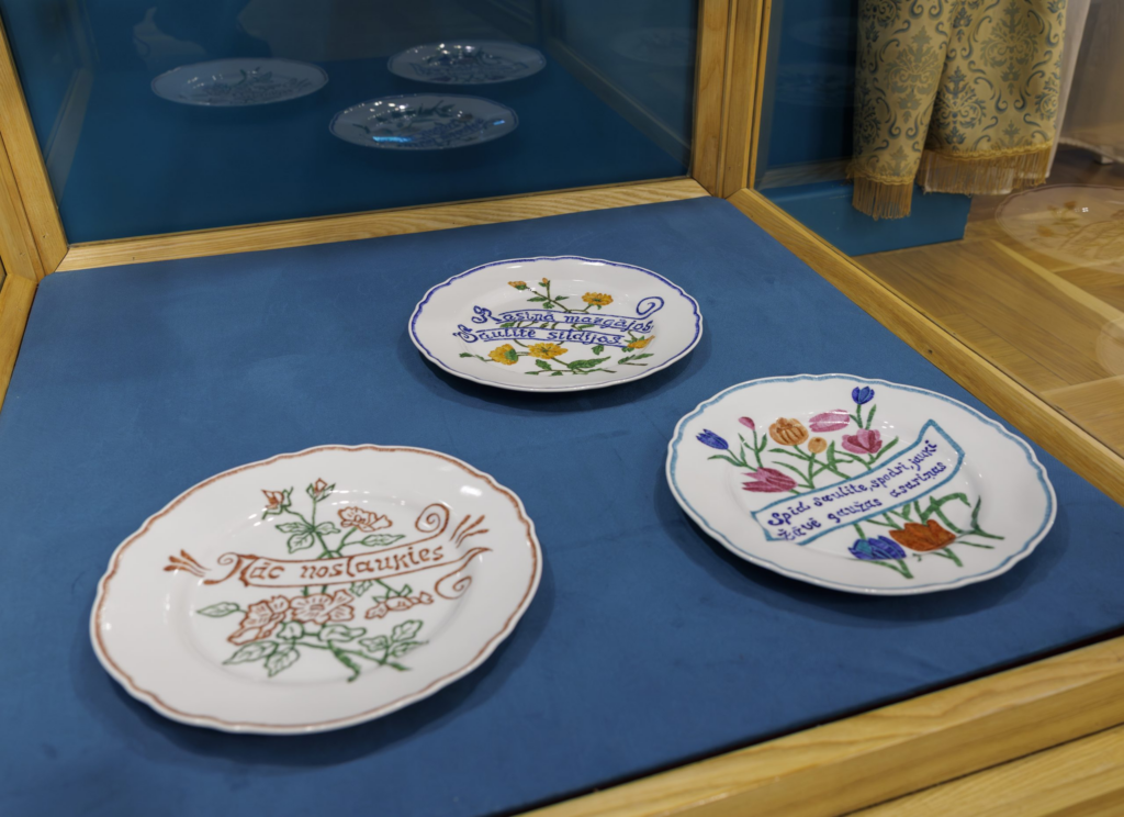 Izstādē apvienotas trīs autores radošās tēmas – vēsturiskā fotogrāfija, rotaļa ar veciem priekšmetiem un izšuvumu motīvi porcelānā, kas atklāj saikni starp pagātni un tagadni, bērnības atmiņām un laiku pirms mums.