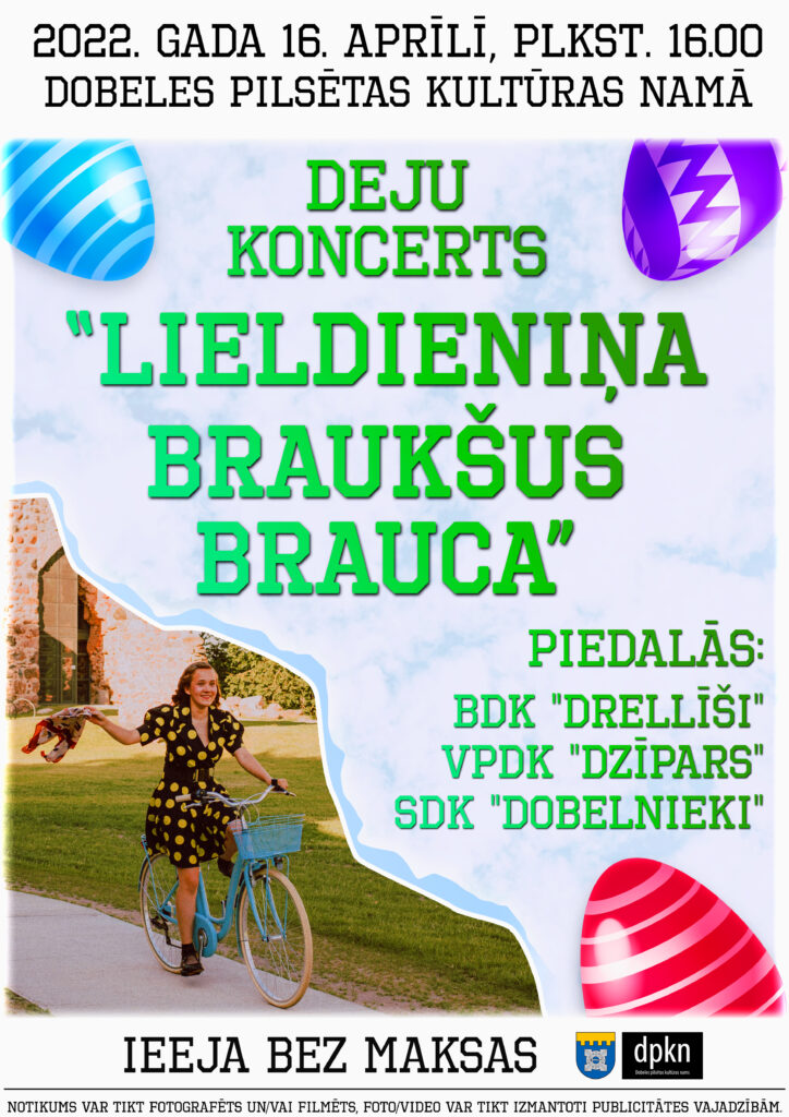 16. aprīlī pulksten 16 ikviens aicināts uz kopā sanākšanas un tradīciju koncertu “Lieldieniņa braukšus brauca” Dobeles pilsētas kultūras namā, informē Dobeles pilsētas kultūras nama kultūras darba menedžere Madara Vinkelmane.