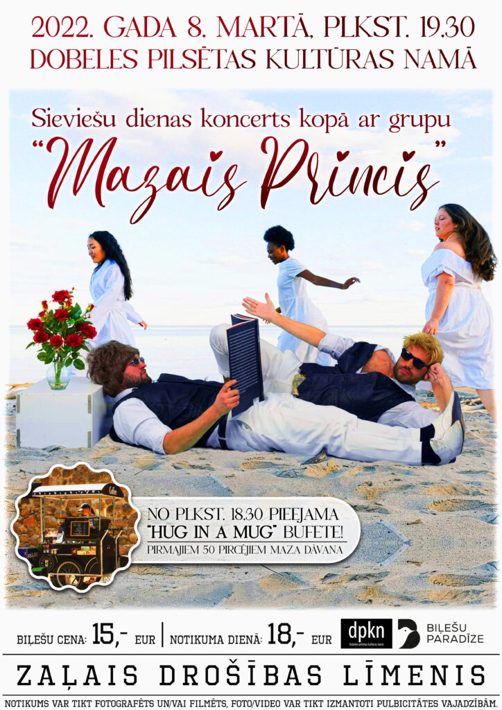 Dobeles pilsētas kultūras nams sadarbībā ar grupu “Mazais Princis” 8. martā pulksten 19.30 vēlas iepriecināt apmeklētājus ar Sieviešu dienai veltītu koncertu, informē Dobeles pilsētas kultūras nama kultūras darba menedžere Madara Vinkelmane.