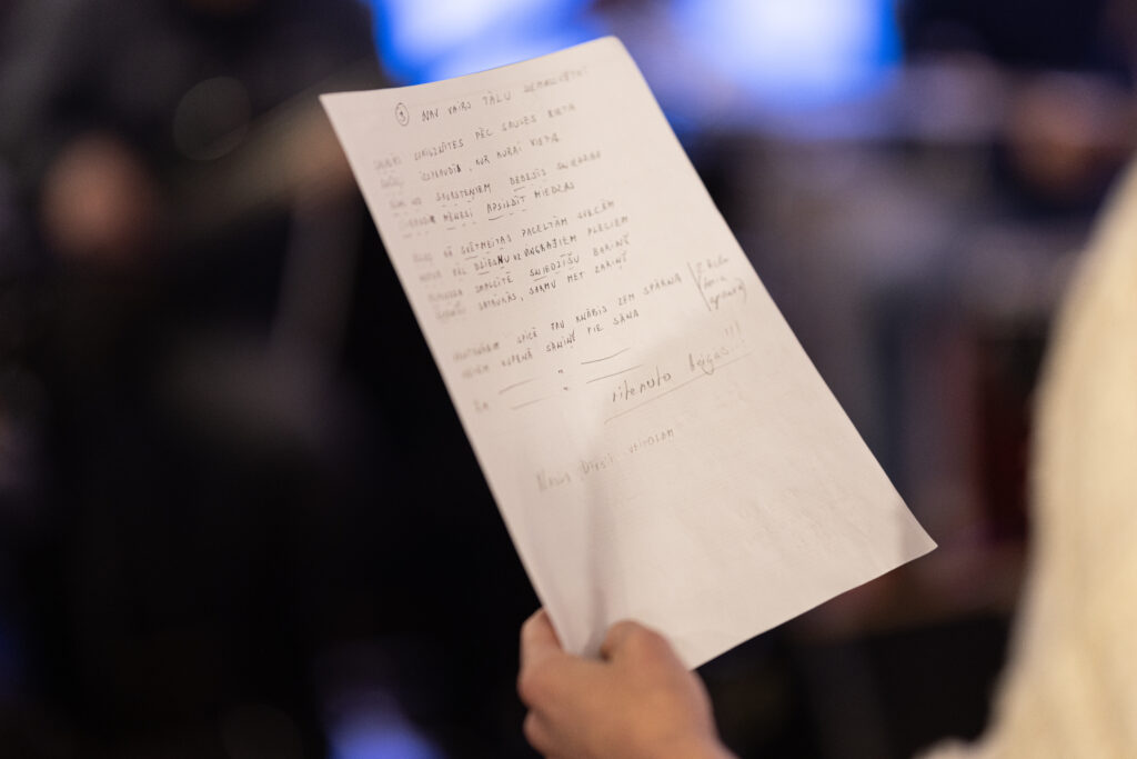 Mākslinieki stāsta, ka koncerta sākumdaļā tiks ieskandināta 2024.gadā gaidāmā dzejnieces Broņislavas Martuževas simtgade, ļaujot klausītājiem ielūkoties topošajā dziesmu ciklā, kas veltīts dzejniecei un izbaudot arī Broņislavas Martuževas dzeju Ditas lasījumā. Pēc tam būs atskats uz jau zināmākām Ziemassvētku dziesmām, kas tapušas dažādos daiļrades posmos, kā arī jau zināmi Ziemassvētku korāļi. Piedāvājam ielūkoties mūziķu mēģinājuma procesā!