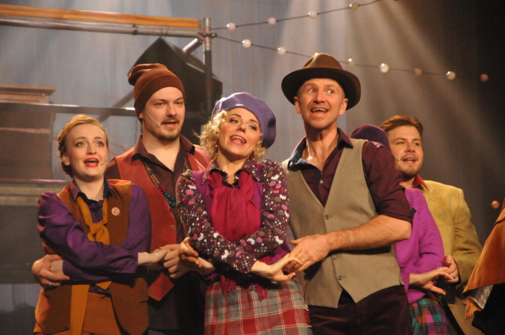 Izrādē piedalās Dināra Rudāne, Dainis Skutelis, Jolanta Strikaite, Anastasija Dolgoņenko, Kārlis Rūtentāls, jaunie mūzikla dziedātāji aktieri Emīls Gilučs, Edvards Grieze, Toms Kursītis, Austra Elza Kozuliņa. Maija Punka, Sarma Liede, Toms Kalderauskis, dejotāji Zane Prokofjeva, Asnate Rikse, Rolands Šteinbergs, Kārlis Kemlers un instrumentālais ansamblis. Jāpiebilst, ka džūkboksa mūzikla analogs ir, piemēram, populārais mūzikls “Mamma Mia!”.