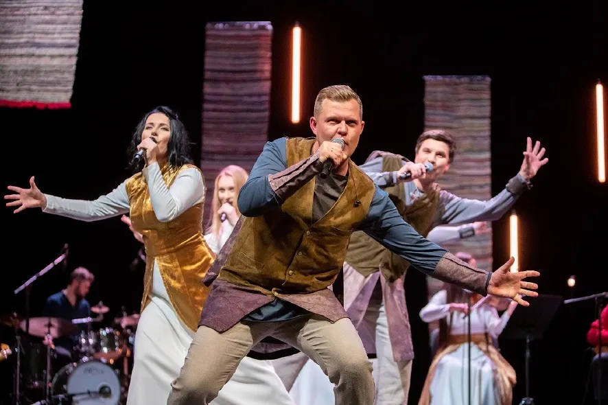 Ar pavasarīgu enerģiju gaidāmo Dziesmu svētku noskaņās pie skatītājiem dodas tautasdziesmu programma “Dieva dēli. Saules meitas”. Jelgavas kultūras namā koncerts notiks 25. martā.
