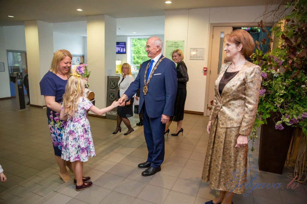 Pateicībā par paveikto Jelgavas domes priekšsēdētājs Andris Rāviņš skolēniem un skolotājiem pasniedza Pateicības rakstus un dāvanas ar Jelgavas simboliku.
