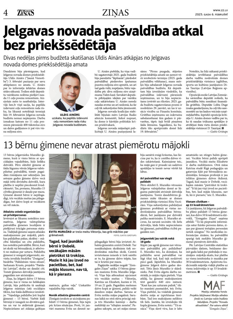 Projektu līdzfinansē Mediju atbalsta fonds no Latvijas valsts budžeta līdzekļiem. Projekts “Novadu aktualitātes”. Par saturu atbild “Zemgales Ziņas”.