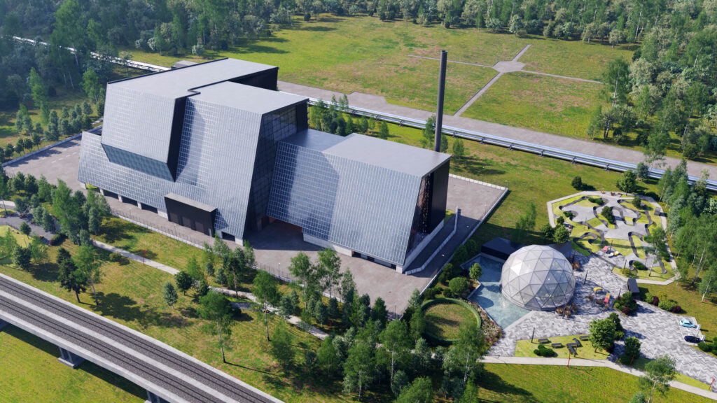 “Vides resursu centra” plānotās rūpnīcas projekta vizualizācija.