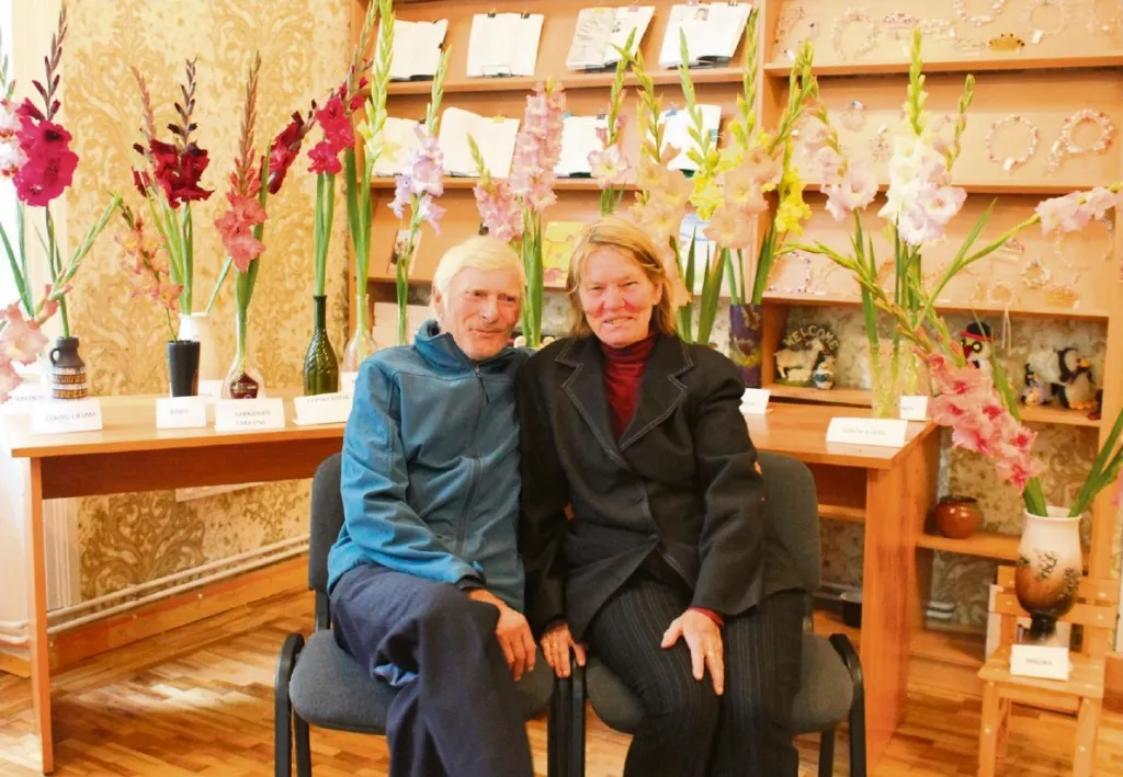 • AGRA UN GUNĀRS STRAUMAŅI savā gladiolu izstādē Lielplatones pagasta bibliotēkā.