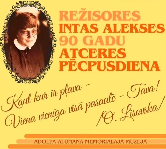 Vienojoties dziesmā ar šiem viņas dzejas vārdiem, 16. decembra pēcpusdienā savas skolotājas, režisores Intas Alekses 90 gadu jubilejā uzstājās 12 viņas audzēkņi – Ādolfa Alunāna Jelgavas teātra esošie un bijušie aktieri un režisori. Intas Alekses atceres uzvedumā Ādolfa Alunāna memoriālajā muzejā skatītāji baudīja latviešu autoru dzeju, prozu un dziesmas no režisores reiz veidotajiem iestudējumiem.