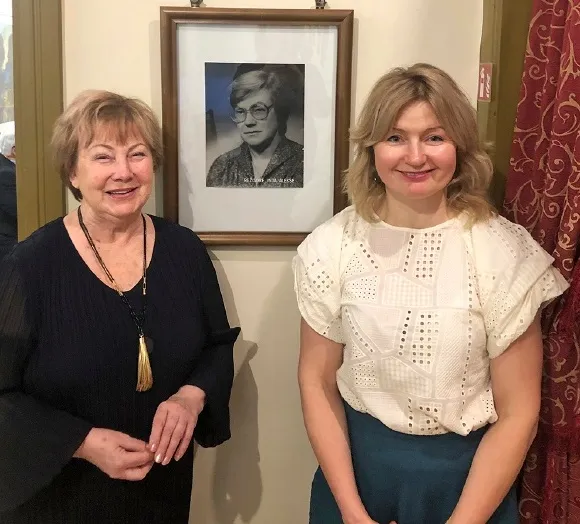 ATCERES PĒCPUSDIENAS režisores Dzintra Zimaiša un Elīna Apsīte pie skolotājas foto Ādolfa Alunāna memoriālajā muzejā.