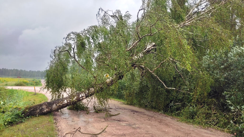 Vētras nolauzts bērzs pārgāzies pār Klijēnu ceļu, foto tapis 30. jūlijā.