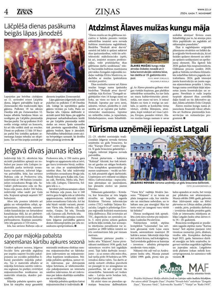 Projektu līdzfinansē Mediju atbalsta fonds no Latvijas valsts budžeta līdzekļiem. Par saturu atbild “Zemgales Ziņas”. Projektā “Novadu balss” sadarbojas “Zemgales Ziņas”, “Kurzemes Vārds”, “Izdevniecība “Auseklis””, “Vietējā” un “Radio SWH”.