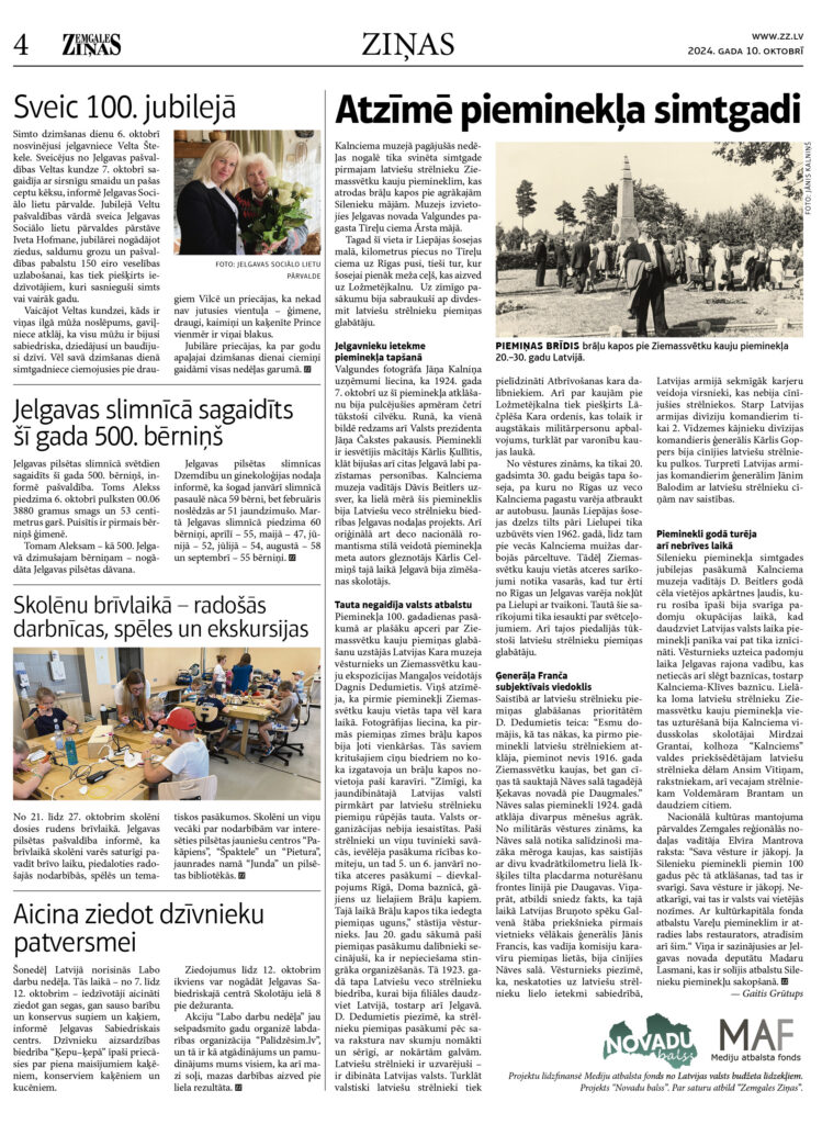 Projektu līdzfinansē Mediju atbalsta fonds no Latvijas valsts budžeta līdzekļiem. Projekts “Novadu balss”. Par saturu atbild “Zemgales Ziņas”.
