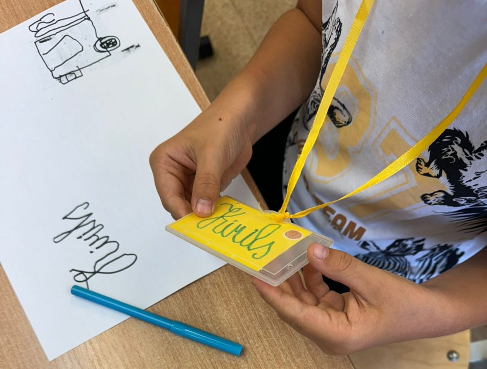 Saņem skolas somu un mācību piederumus