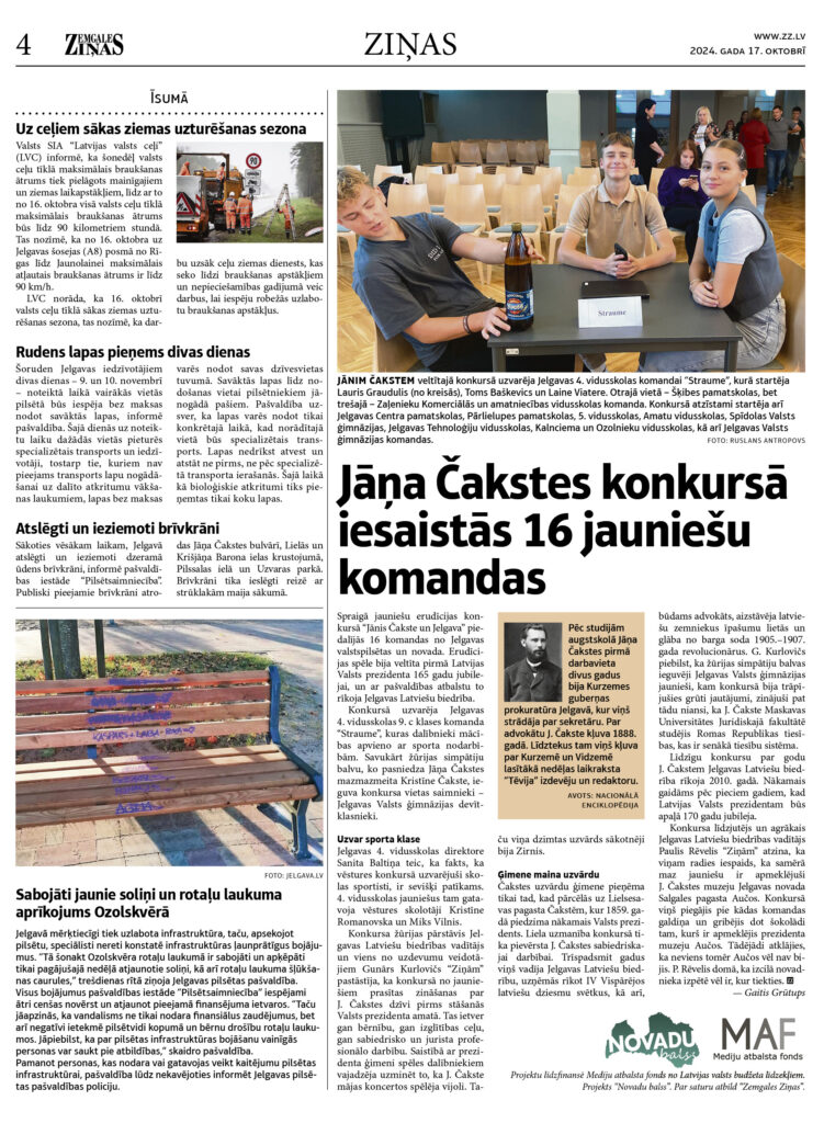 | Projektu līdzfinansē Mediju atbalsta fonds no Latvijas valsts budžeta līdzekļiem. Projekts “Novadu balss”. Par saturu atbild “Zemgales Ziņas”. | |