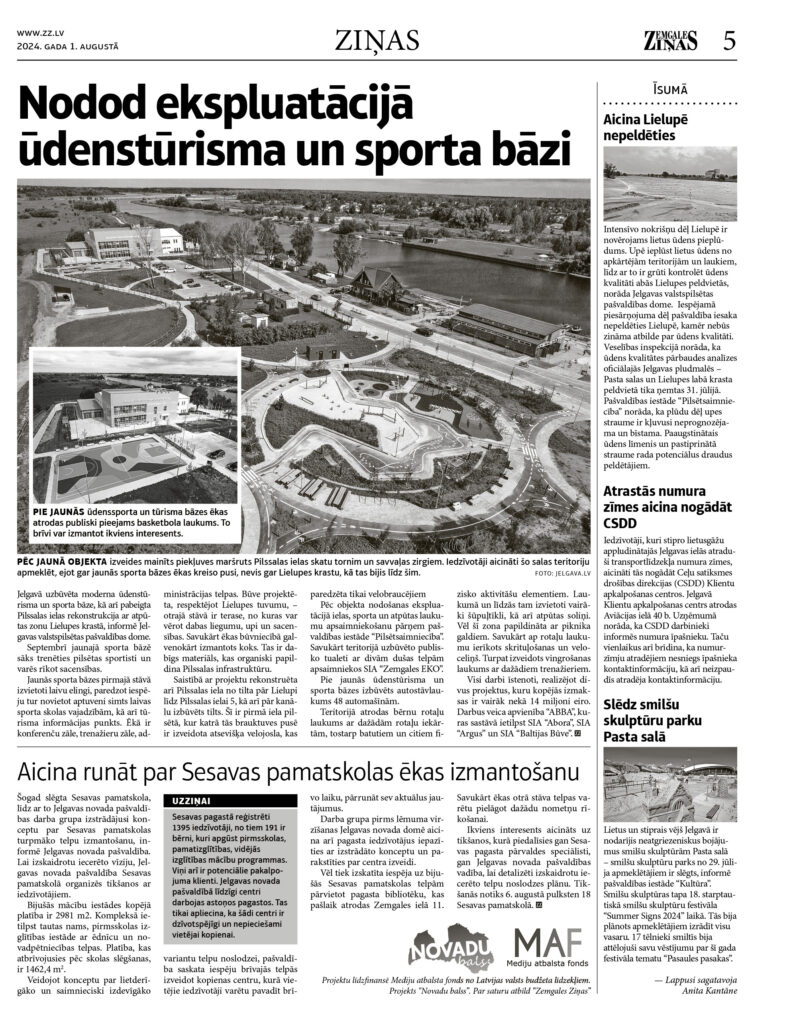 | Projektu līdzfinansē Mediju atbalsta fonds no Latvijas valsts budžeta līdzekļiem. Projekts “Novadu balss”. Par saturu atbild “Zemgales Ziņas” | |