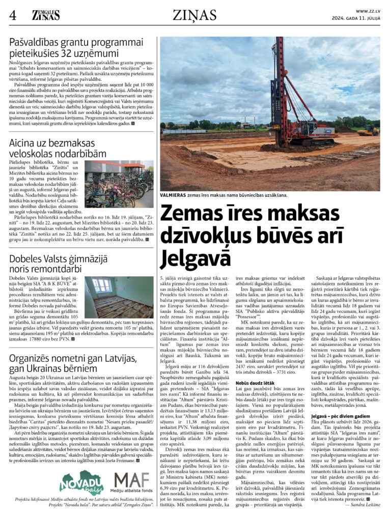 Par saturu atbild “Zemgales Ziņas”. Projektā “Novadu balss” sadarbojas “Zemgales Ziņas”, “Kurzemes Vārds”, “Izdevniecība “Auseklis””, “Vietējā” un “Radio SWH”. #SIF_MAF2024