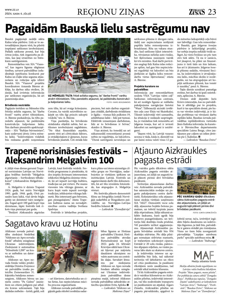 Par publikāciju saturu atbild “Zemgales Ziņas”. Publikācijas tapušas, “Zemgales Ziņām” sadarbojoties ar laikrakstiem “Latvijas Avīze”, “Staburags”, “Dzirkstele”, “Bauskas Dzīve”, “Alūksnes un Malienas Ziņas” un “Ziemeļlatvija”. #SIF_MAF2024