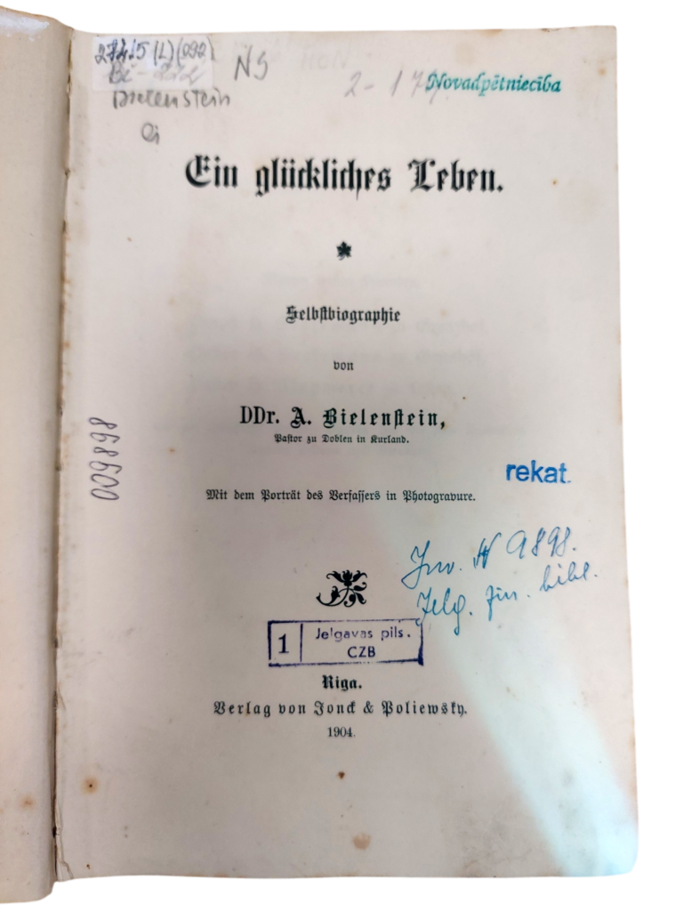 Jelgavas pilsētas bibliotēkā ir pieejams Augusta Bīlenšteina autobiogrāfiskās ievirzes darba eksemplārs gan vācu, gan latviešu valodā. Vācu valodā grāmata izdota 1904. gadā, bet latviski – 1995. gadā.