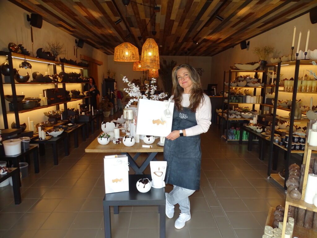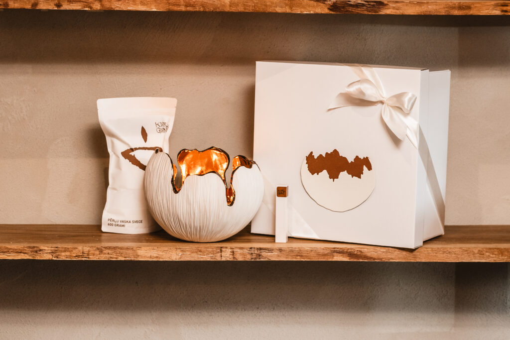 SIA “KurGuni” salonveikals un darbnīca Ozolniekos darbojas kopš 2024. gada adventes. “Pirms tam desmit gadus strādāju par menedžeri un dizaineri uzņēmumā “Dobeles sveces”, kur izstrādāju jaunas sveču kolekcijas gan vietējam, gan ārvalstu tirgum. Sveces man vienmēr ir patikušas, un kādu laiku Jelgavā man piederēja savs veikaliņš “Sveču namiņš”,” stāsta Dace Gersone. Tieši tur, uzklausot pircēju vēlmes, radās ideja par oriģināliem māla traukiem – paliktņiem un svečturiem. “Lielveikalu produkcija visur ir vienāda, bet cilvēkiem gribas kaut ko īpašu un atšķirīgu,” piebilst uzņēmēja. Tā dzima zīmols un uzņēmums “KurGuni”. Tā nosaukums izvēlēts īss, bez garumzīmēm, starptautiski viegli izrunājams, bet vienlaikus ar latvisku, mazliet maģisku skanējumu.