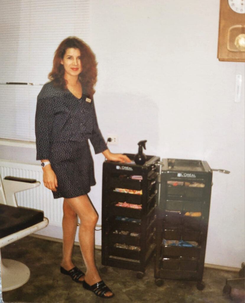 Pēc Rīgas 34. profesionāli tehniskās skolas beigšanas 1988. gadā jaunā friziere, protams, savas darba gaitas sāka dzimtajā Jelgavā, jo pēc sadales komisijas lēmuma tika nosūtīta uz sadzīves pakalpojumu kombinātu. Tas viņu norīkoja darbā kādā frizētavā Jelgavas nomalē, taču vīriešu zālē. “Sākumā uz darbu devos raudādama un drebošām rokām, jo nekad iepriekš vīriešus nebiju frizējusi. Onkulīšiem matus nebiju griezusi, vien jauniem puišiem. Tolaik viņiem modē bija gari mati mugurpusē un augšas spurainas vai lokās. Citiem vārdiem – kārtīgi ērkuļi.” Šo frizētavu vadīja meistare Edīte Krūmiņa. “Edīti uztvēru kā savu otro mammu jeb, kā šodien teiktu, mentori. Man pat raksturā kaut kas ticis no viņas un, protams, arī no manas pašas mammas,” pasmejas friziere.