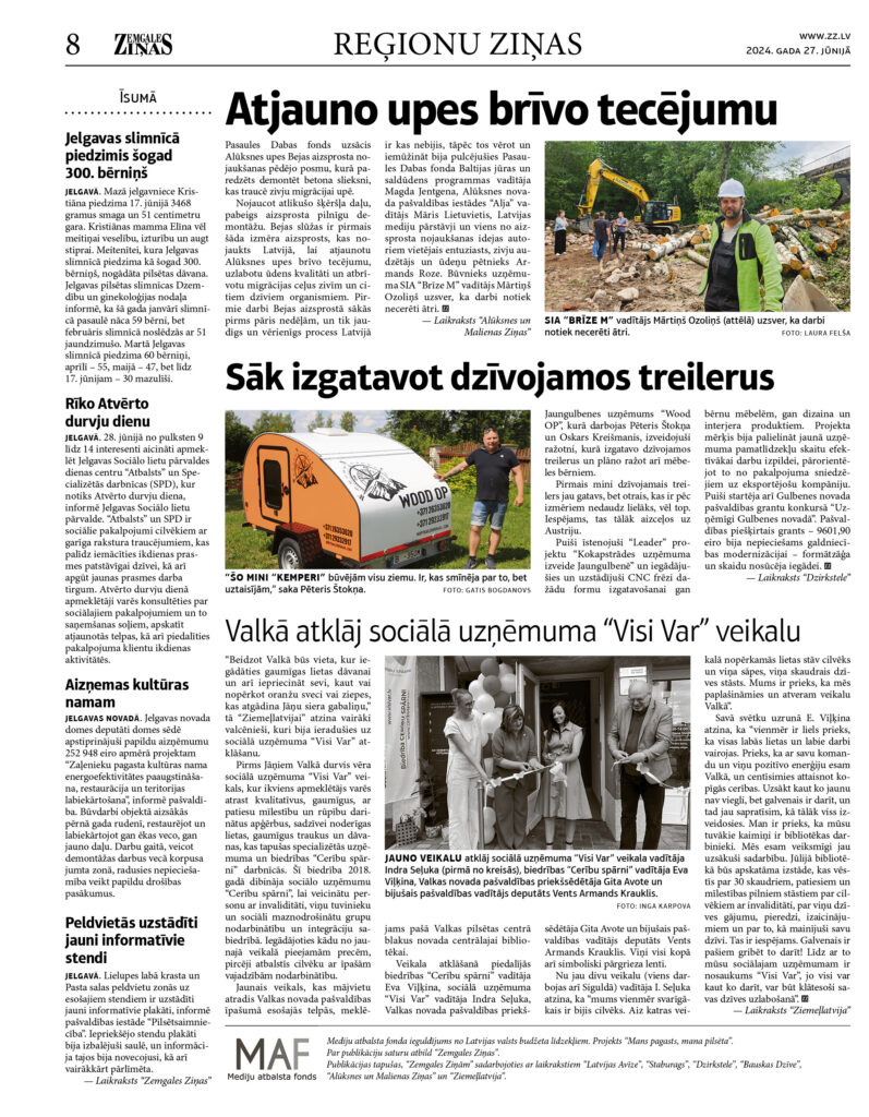 REĢIONU ZIŅAS: Atjauno upes brīvo tecējumu