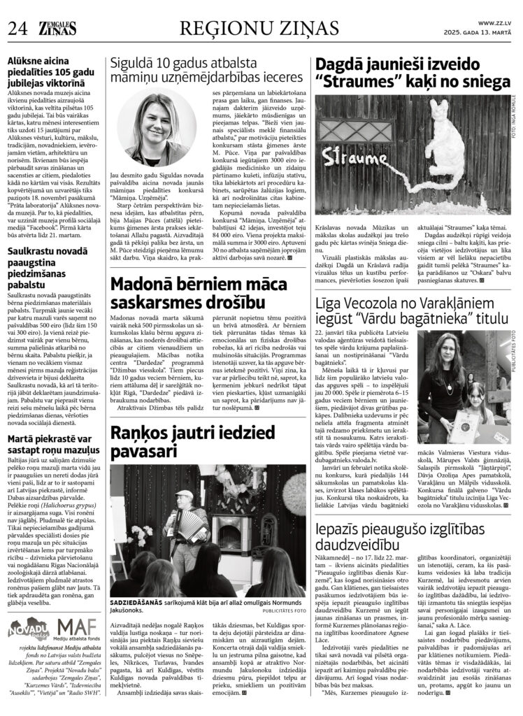 rojektu līdzfinansē Mediju atbalsta fonds no Latvijas valsts budžeta līdzekļiem. Par saturu atbild “Zemgales Ziņas”. Projektā “Novadu balss” sadarbojas “Zemgales Ziņas”, “Kurzemes Vārds”, “Izdevniecība “Auseklis””, “Vietējā” un “Radio SWH”.