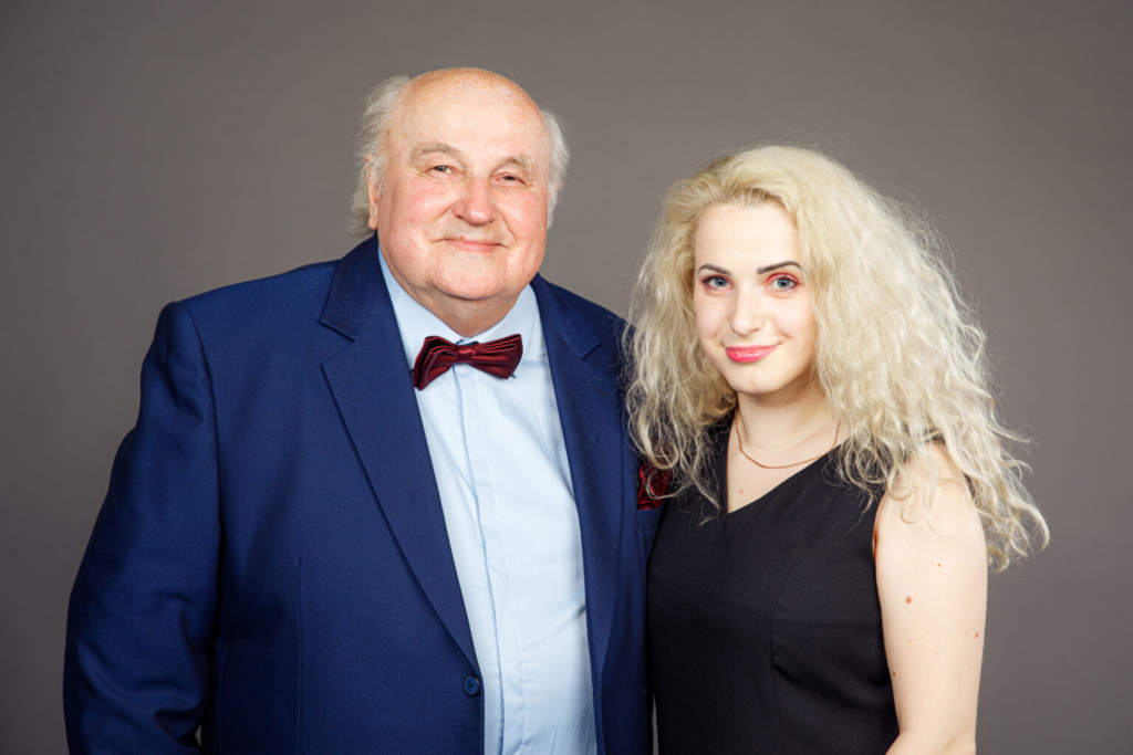 • DIRIĢENTS kopā ar ilggadējo orķestranti Laumu Ozolu, kas ir filmas autore. Režisore 15 gadus muzicēja Gulbenes mūzikas skolas orķestrī, tāpēc uzticēties skolotājam ir viegli. Foto – Dmitrijs Šuļžics.