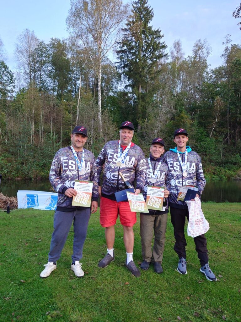 Latvijas čempionāta spiningošanā no krasta vicečempioni Raimonds Kinerts, Andis Freivalds, Reinis Bičevskis un Andris Kukors ar pirmā posma uzvarētājbalvām.