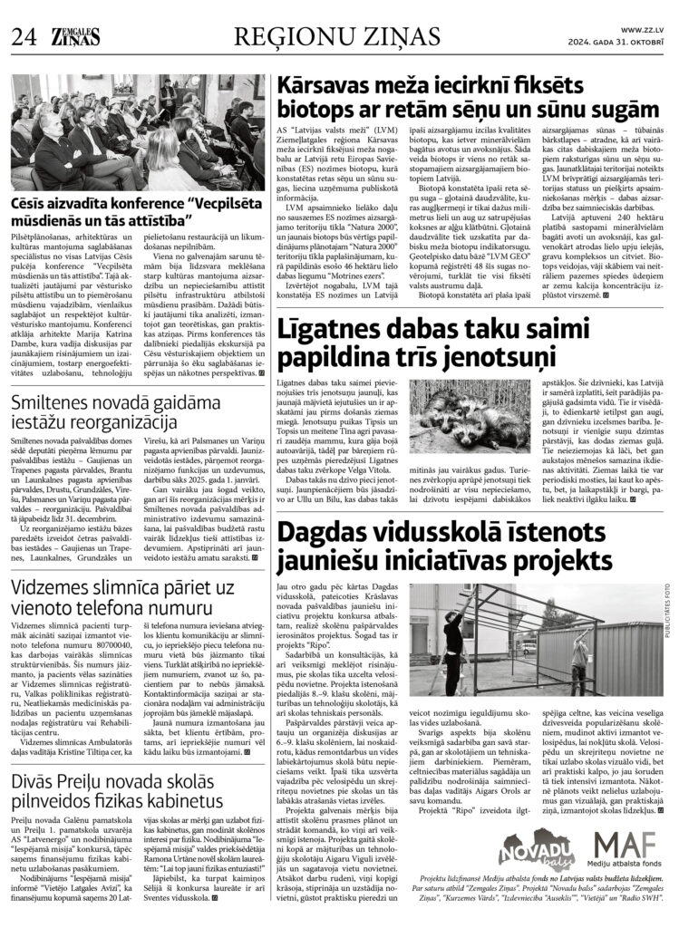 Projektu līdzfinansē Mediju atbalsta fonds no Latvijas valsts budžeta līdzekļiem. Par saturu atbild “Zemgales Ziņas”. Projektā “Novadu balss” sadarbojas “Zemgales Ziņas”, “Kurzemes Vārds”, “Izdevniecība “Auseklis””, “Vietējā” un “Radio SWH”.