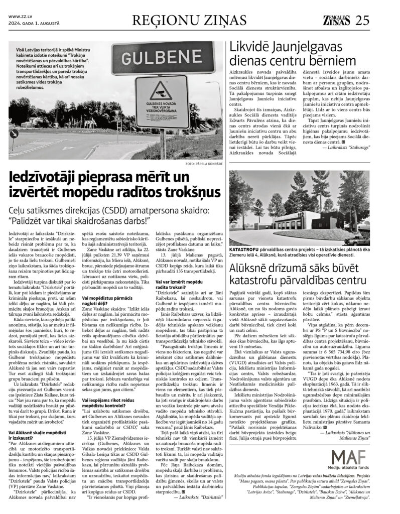 Mediju atbalsta fonda ieguldījums no Latvijas valsts budžeta līdzekļiem. Projekts “Mans pagasts, mana pilsēta”. Par publikāciju saturu atbild “Zemgales Ziņas”. Publikācijas tapušas, “Zemgales Ziņām” sadarbojoties ar laikrakstiem “Latvijas Avīze”, “Staburags”, “Dzirkstele”, “Bauskas Dzīve”, “Alūksnes un Malienas Ziņas” un “Ziemeļlatvija”.