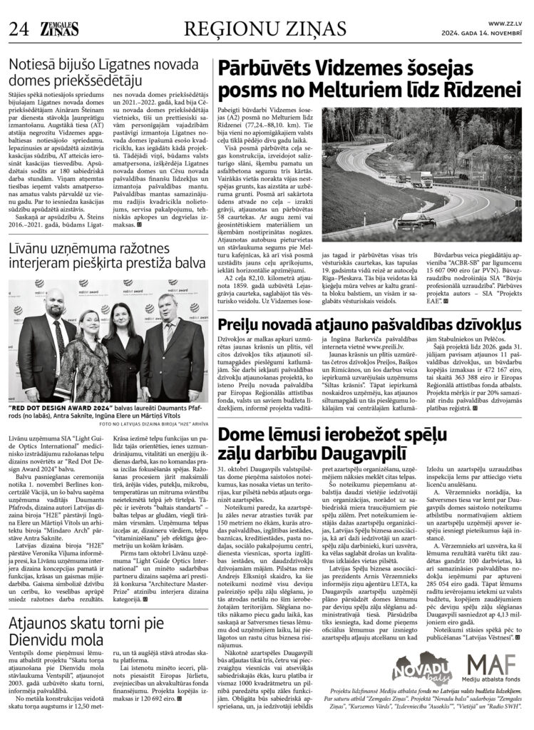 Pirms tam oktobrī Līvānu uzņēmuma “Light Guide Optics International” un minēto sadarbības partneru dizains saņēma arī prestižā konkursa “Architecture MasterPrize” atzinību interjera dizaina kategorijā.