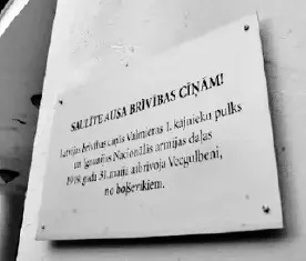 • TĀ IZSKATĪJĀS piemiņas plāksne, kura Gulbenes pilsētas domes uzdevumā pirms 16 gadiem tika izvietota pie Vecgulbenes muižas manēžas, to saskaņojot ar toreizējiem ēkas īpašniekiem.