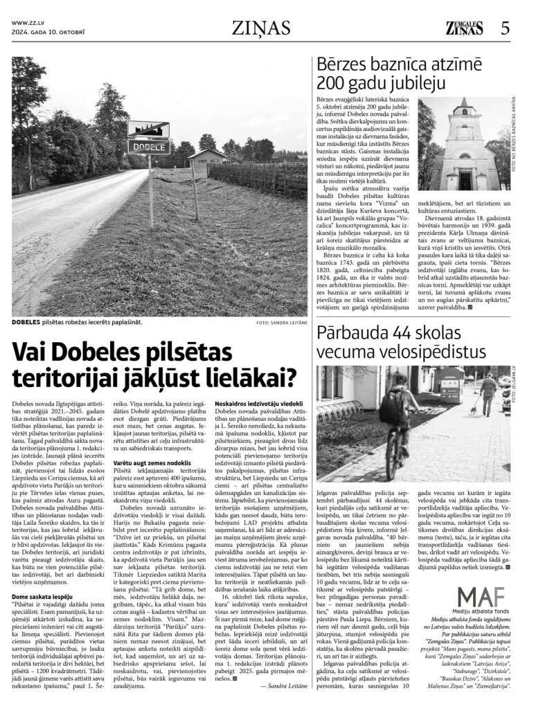 Mediju atbalsta fonda ieguldījums no Latvijas valsts budžeta līdzekļiem. Par publikācijas saturu atbild “Zemgales Ziņas”. Publikācija tapusi projektā “Mans pagasts, mana pilsēta”, kurā “Zemgales Ziņas” sadarbojas ar laikrakstiem “Latvijas Avīze”, “Staburags”, “Dzirkstele”,