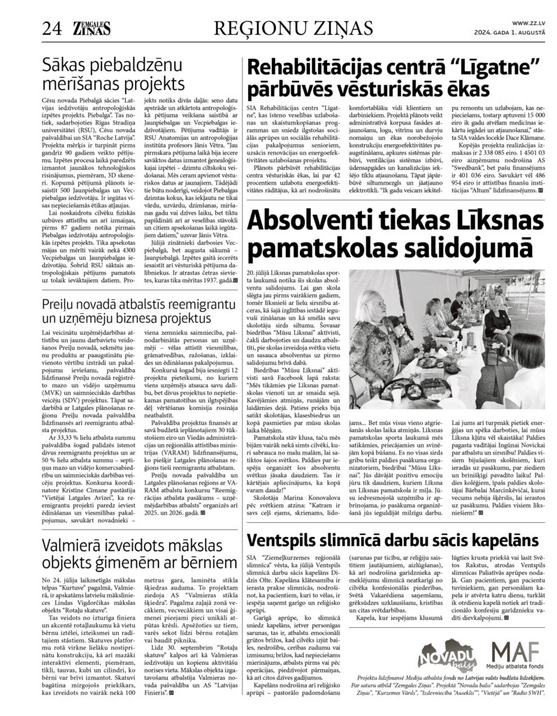 Projektu līdzfinansē Mediju atbalsta fonds no Latvijas valsts budžeta līdzekļiem. Par saturu atbild “Zemgales Ziņas”. Projektā “Novadu balss” sadarbojas “Zemgales Ziņas”, “Kurzemes Vārds”, “Izdevniecība “Auseklis””, “Vietējā” un “Radio SWH”.