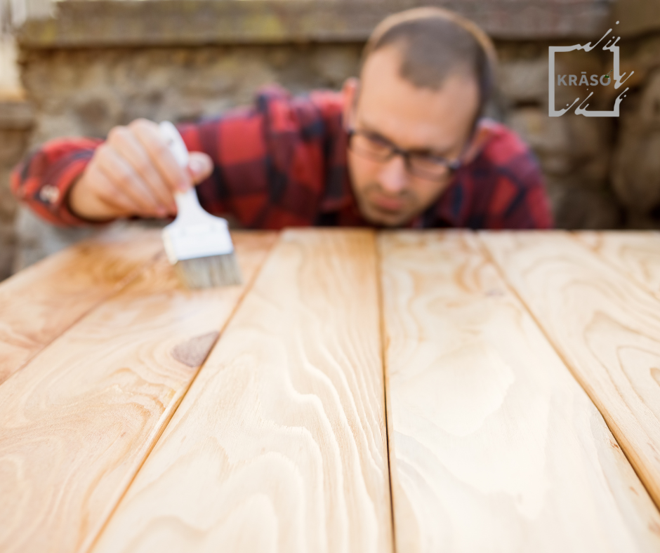 Krāsošana noslēdz koksnes poras, neļaujot tai uzņemt ūdeni. Papildus krāsas pievienošanai apstrādes procesā papildinās tās aizsardzības slāni pret saules UV stariem, samazinot vai novēršot krāsas maiņu.