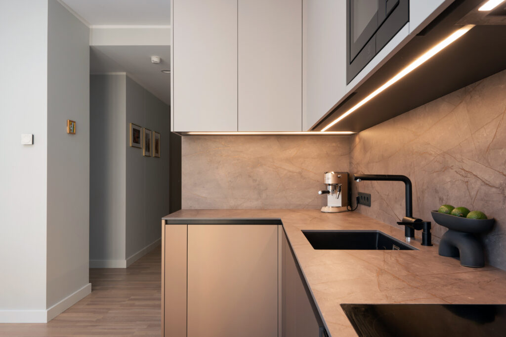 Klients ir ļoti apmierināts ar gala rezultātu. Virtuve ir ne tikai skaista, bet arī ērta un funkcionāla, ar katru detaļu rūpīgi izplānotu un pielāgotu viņa indviduālajām vajadzībām.