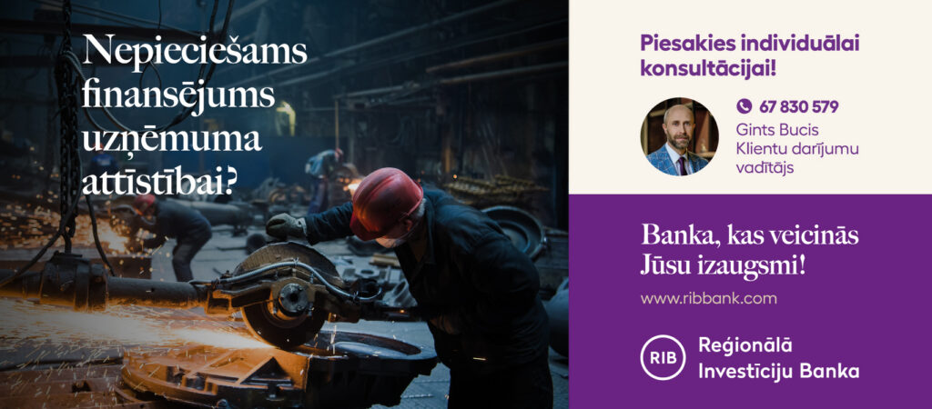 Nozīmīgu lomu finansēšanā ieņem AS “Reģionālā investīciju banka” (RIB), kas stratēģiski atbalsta vietējos ražotājus – gan izaugsmes periodos, gan krīzēs. Banka fokusējas uz ilgtermiņa partnerību, virzot finansējumu ne tikai ikdienas vajadzību nodrošināšanai, bet arī uzņēmumu transformācijai un modernizācijai, tai skaitā inovācijām un eksporta attīstībai. Īpaša uzmanība tiek pievērsta augstas pievienotās vērtības nozarēm, tostarp metālapstrādei, mašīnbūvei un zaļās enerģijas risinājumiem.