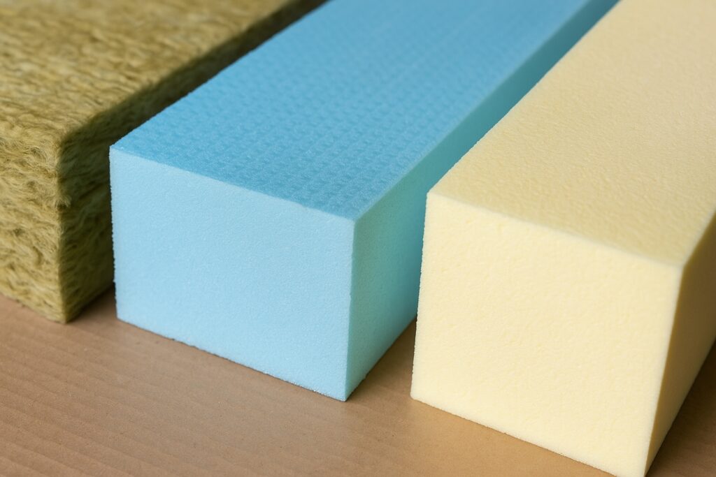 | Raksturlielums | Minerālvate | Ekstrudētais putuplasts (XPS) | Poliuretāns (PUR/PIR) |