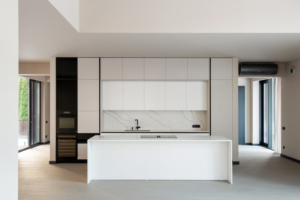 Tā kā šis ir moderns mājoklis mēs iekļāvām arī virkni modernu virtuves iekārtu! “Elica tesla” plīts virsma ar integrēto nosūcēju ir ne tikai stilīgs dizaina elements, bet arī viens no labākajiem risinājumiem tirgū, kas noņem liekās smakas un gatavošanas tvaikus elegantā veidā!
