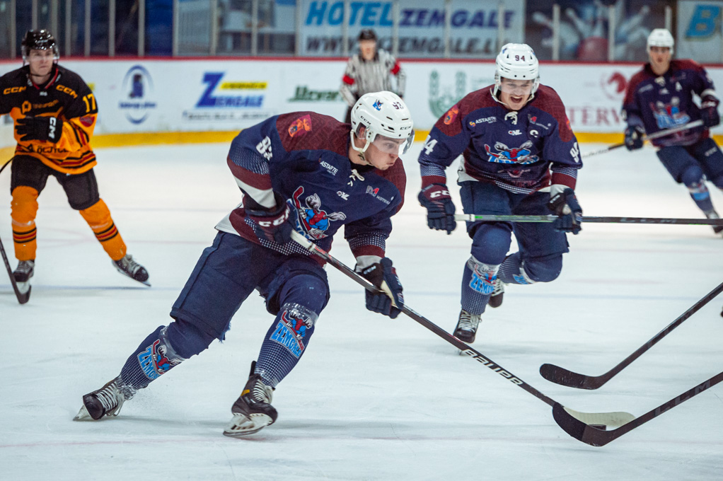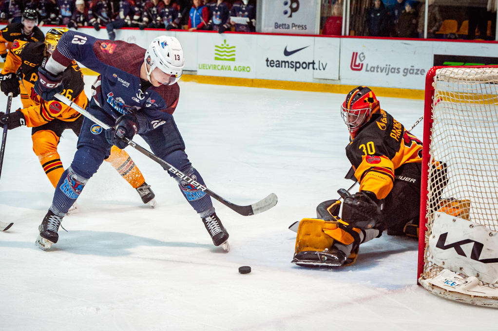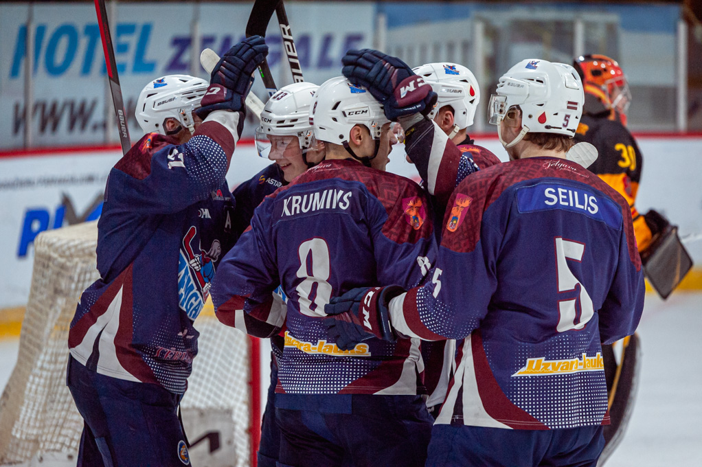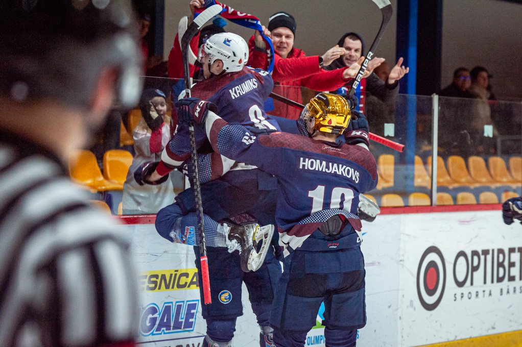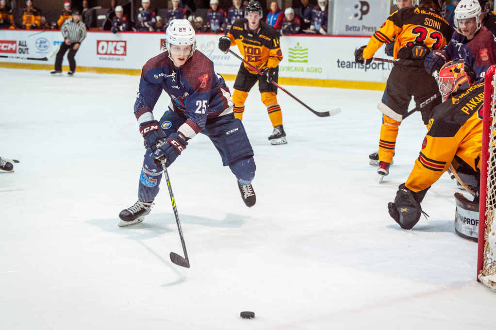 Kad viesi nomainīja vārtsargu pret sesto laukuma spēlētāju, Artūrs Homjakovs no savas aizsardzības zonas ieraidīja ripu tukšos vārtos – 5:1.