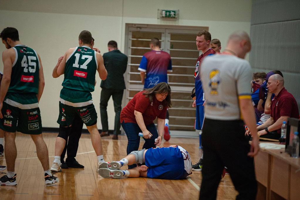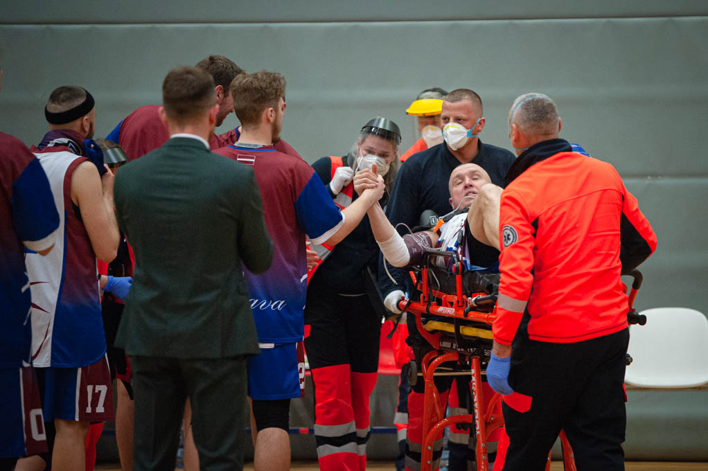 Diemžēl spēles trešajā ceturtdaļā traumu guva BK “Jelgava” komandas spēlētājs E.Krūmiņš, un atlikušajā spēles laikā komandai vairs nevarēja palīdzēt. Basketbolists tika transportēts ar neatliekamās medicīniskās palīdzības vienību. Olimpiskais čempions ar vētrainām ovācijām tika pavadīts no zāles. Šajā emocionālajā brīdī ar Jelgavas spēlētāju domās bija visa zāle un basketbola pasaule, ar domām un laba vēlējumiem par ātrāku atlabšanu.