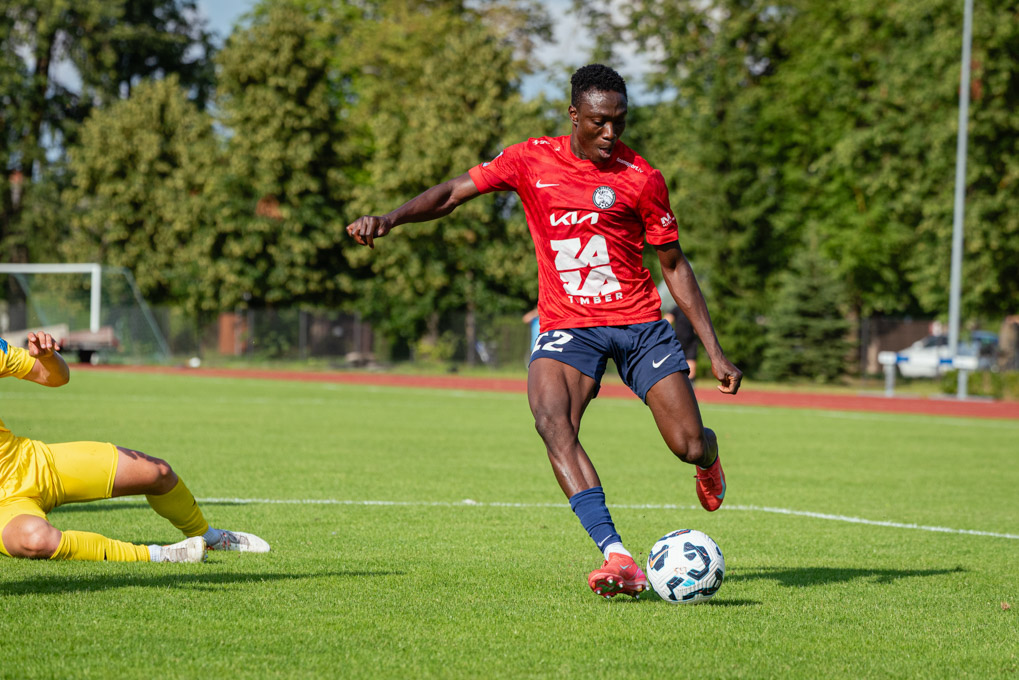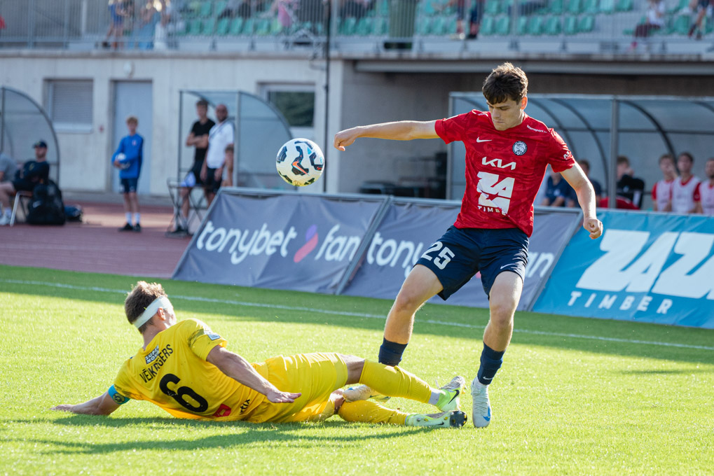 Un viņi to paveica! Jau no pirmajām minūtēm “FS Jelgava” pārņēma iniciatīvu un enerģiski uzbruka viesu vārtiem. Lieliskie momenti nesa augļus 13. minūtē, kad čehs Ondržejs Ulmans ar precīzu un spēcīgu sitienu no ~18 metriem raidīja bumbu vārtos – 1:0.