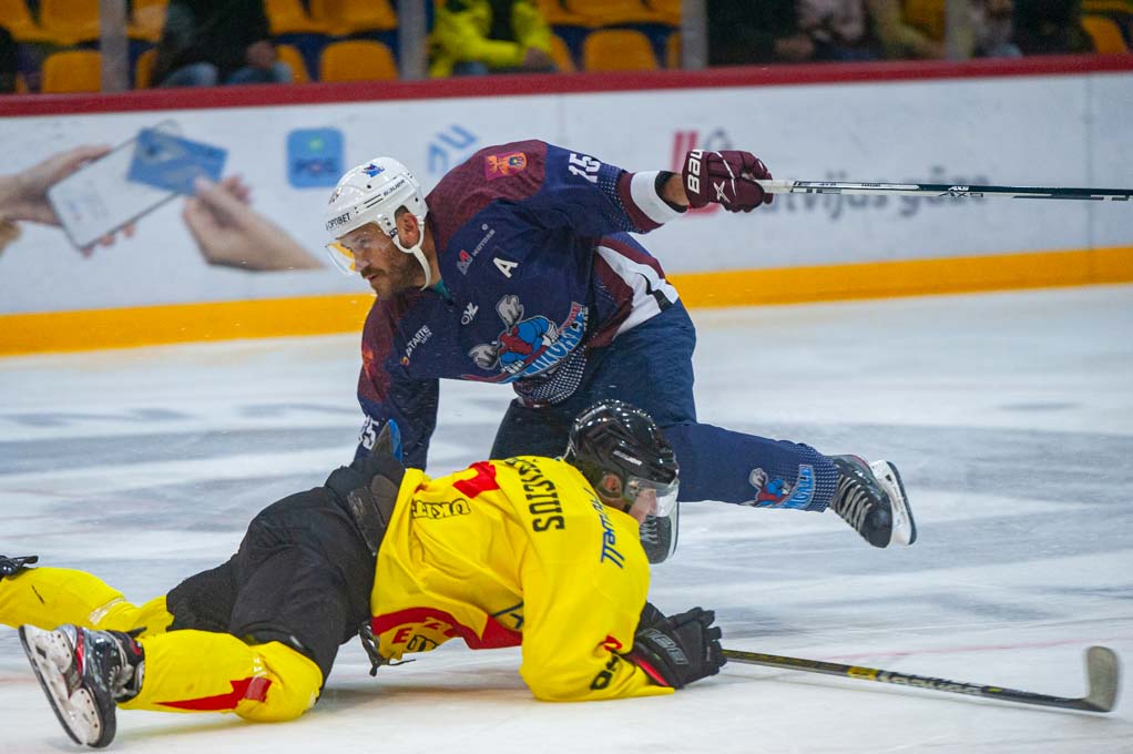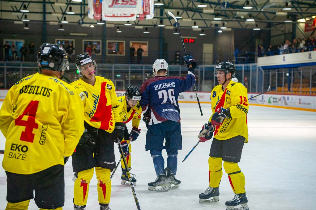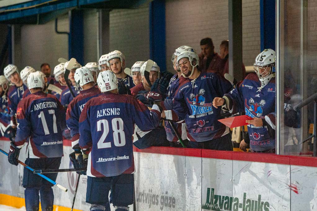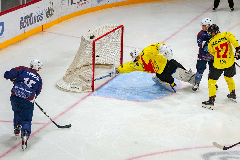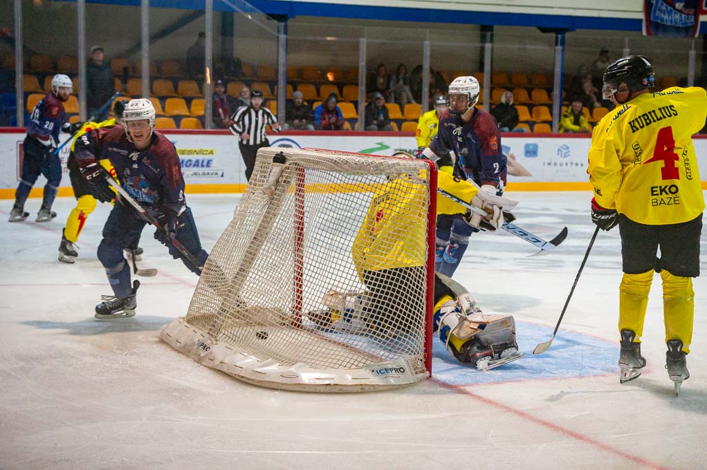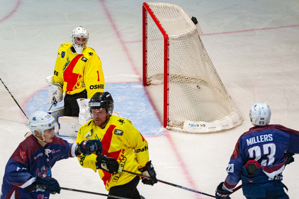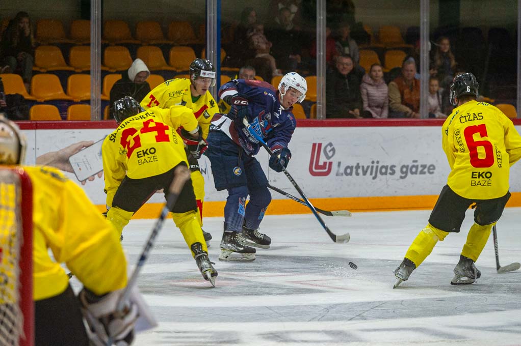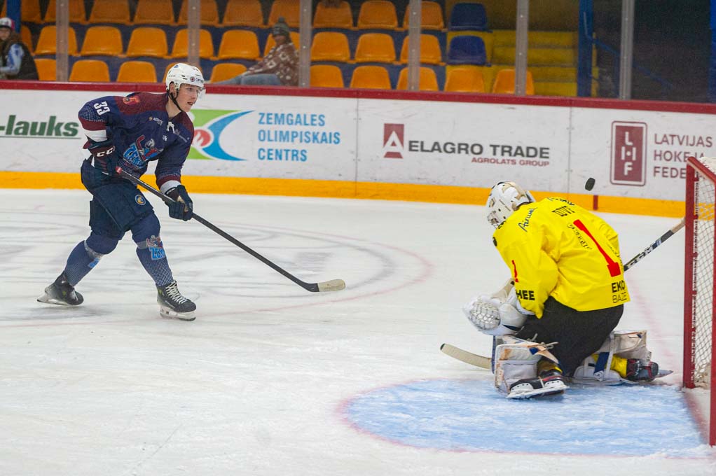 Spēles rezultātu atklāja Kristaps Kristiņš, tad vairākumā pārsvaru dubultoja Eimantas Noreika. Kārlis Bucenieks pirmo trešdaļu noslēdza ar vairākumā gūtajiem vārtiem – 3:0.