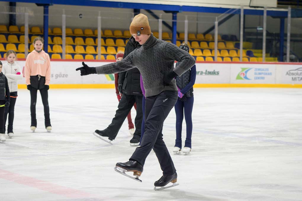 Deniss Vasiļjevs Jelgavā iedvesmo jaunās daiļslidotājas (FOTO)