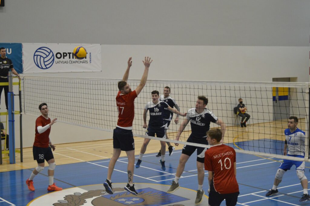 Svarīgākais bija sestdienas mačs pret „Aizputes” komandu, kurai vairākas atliktās spēles vēl deva iespēju apdraudēt „ozīšu” pozīcijas. Pēc uzvarēta pirmā un zaudēta otrā seta (25:17 un 19:25) izšķirošie notikumi risinājās trešajā, ko pēc sīvas cīņas galotnē ar 29:27 savā labā noslēdza mājinieki. Iegūtais emocionālais pārsvars (un pretinieku atslābums) izpaudās arī ceturtā seta sākumā, mājiniekiem tiekot pat pie septiņu punktu pārsvara (10:3). Turpinājumā gan aizputnieki centās to sadeldēt, tomēr piecu punktu atstatumā tā arī palika (20:25 un 1:3 spēlē). Lielākie punktu guvēji sestdienas statistikā Ozolnieku komandā – Toms Prokofjevs ar 15, Edgars Jusis ar 14 un Mikus Podkalns ar 12 punktiem.
