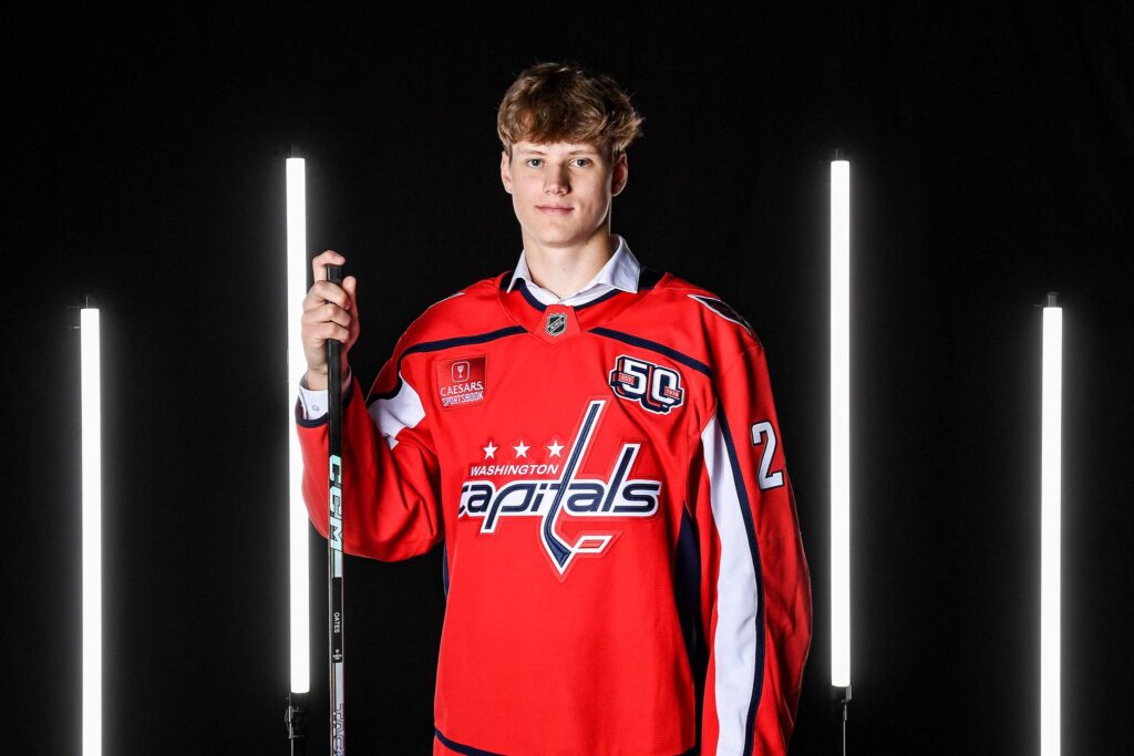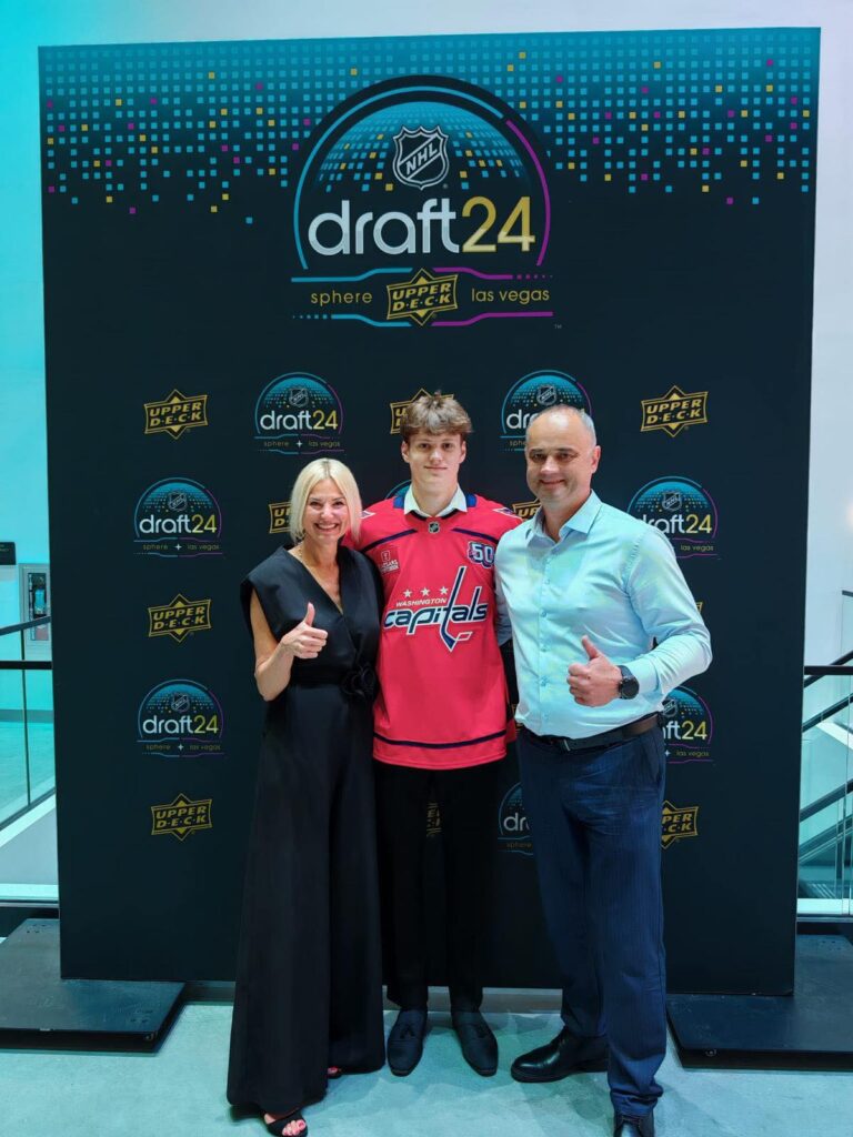 LAS VEGAS, NEVADA – JUNE 29: Eriks Mateiko poses for a portrait after being drafted by the Washington Capitals with the 90th overall pick in the 2024 Upper Deck NHL Draft at Sphere on June 29, 2024 in Las Vegas, Nevada. (Photo by Candice Ward/Getty Images)