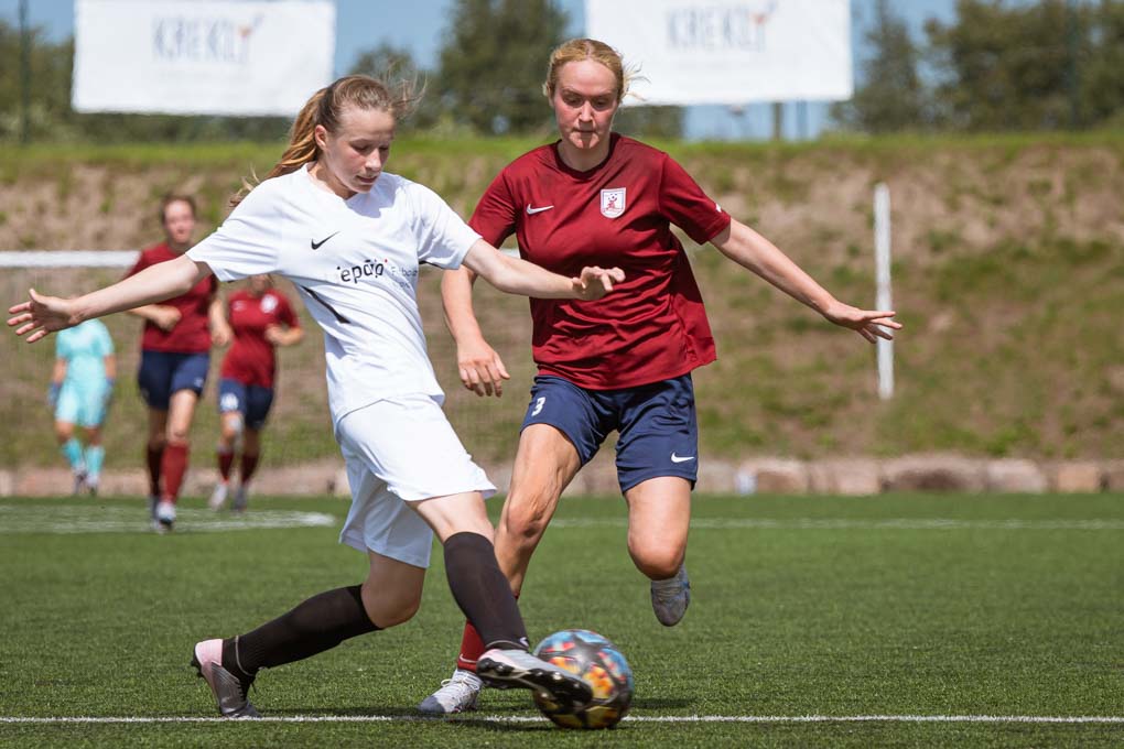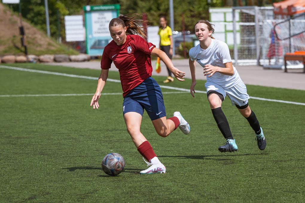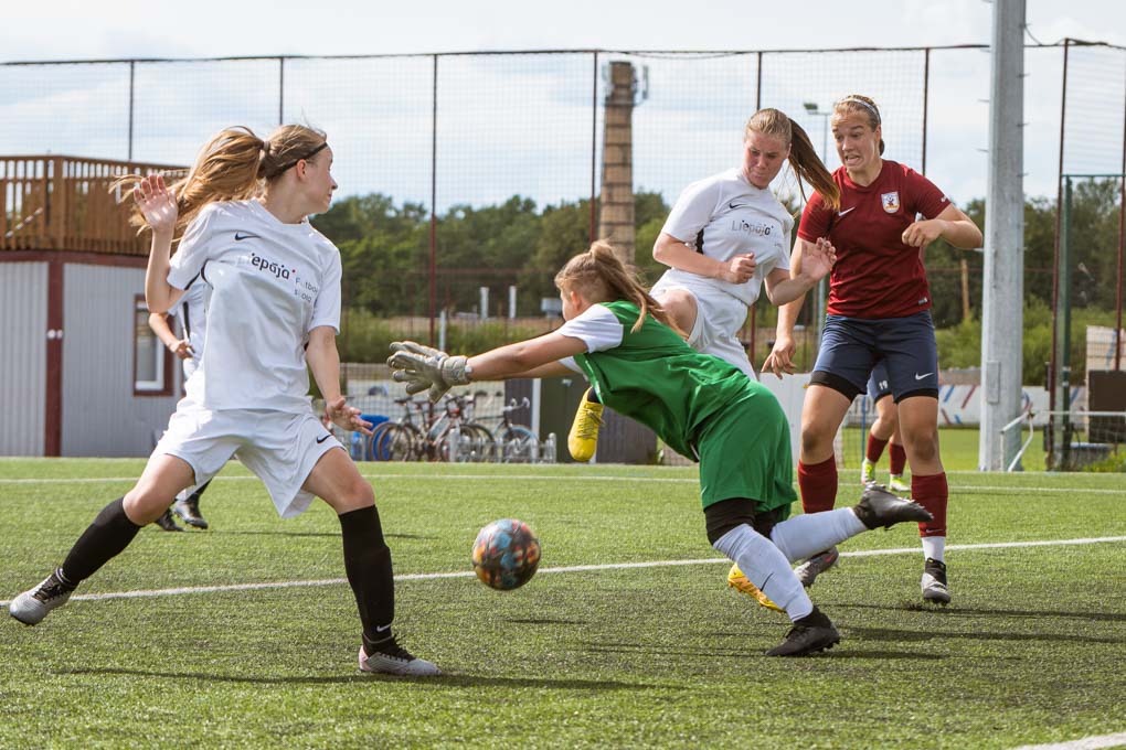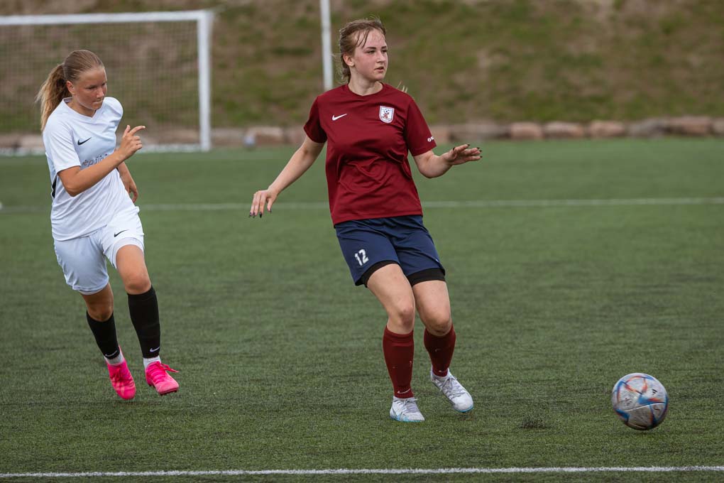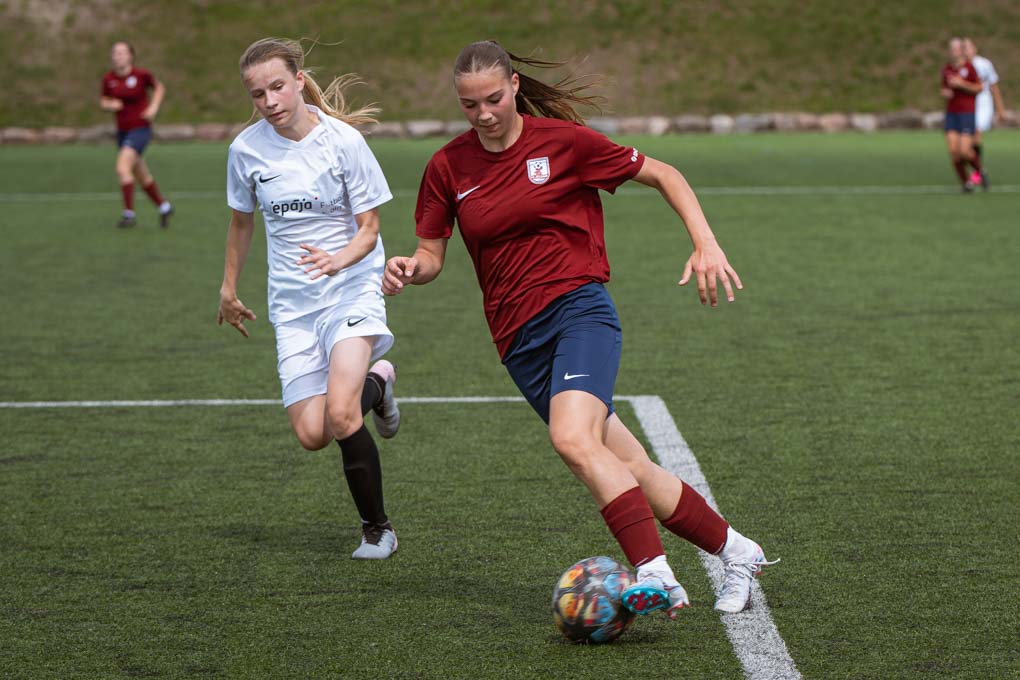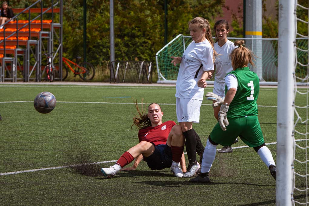 Par pārsteigumu “Liepājas futbola skolas-2” futbolistes neizmantoja viņiem piedāvāto iespēju pārņemt bumbas kontroli. Alise Keita Baltrušaite ņēma spēles grožus savās rokās un veidoja ātrus uzbrukumus caur kreiso malu ātri gūstot divus vārtus – 6:0.